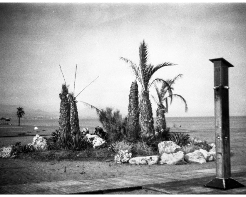 ‘My grandfather and I at a beach in Sabinillas. Spain 2009’ "I went to meet my parents one summer at their holiday apartment. A few weeks before I left my father said he wanted to give me my grandfathers box camera. The trip was meant as a get away from picture making so I didn’t bring my own camera or any agenda for making pictures. However I decided to take a few rolls of film with me so I could try out the family heirloom. I remember it being a bugger to load, there was lots of fumbling with the film and cursing. Not wanting to purposely make pictures I just took the camera with me as I went about doing other things. I quickly realised that when I did decide to make a picture it never burdened me with any mental activity before I released the shutter. Perhaps its because it didn’t feel like a camera but more of a tin box into which my grandfather and I stared and left some quiet thoughts."