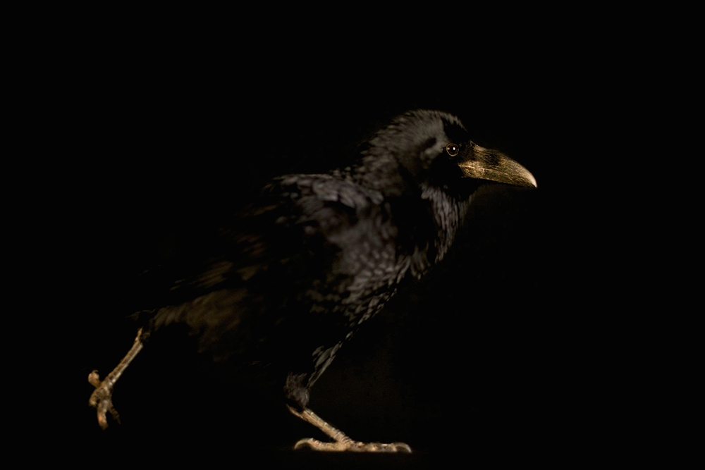 ‘Raven’ 2013 "I photographed this Raven as part of a series, As the crow flies, about my obsession with crows for my Major Project at Westminster University in 2013. Whilst technically not the best shot, the shoot itself was an absolute privilege. To spend time in such close proximity to such an amazing and intelligent creature was an experience I’ll never forget. I spent about an hour in a darkened studio with this beautiful Raven, who hopped about at lightening speed, onto my shoulder, on top of my lights, staying still for mere mili-seconds, and testing my ability to focus!"